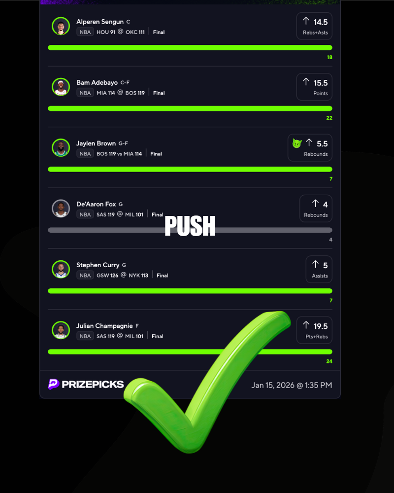 • 🚨 Another winner on Prizepicks & Splash yesterday. That is 6 days in a row of winning. Let's keep it going.